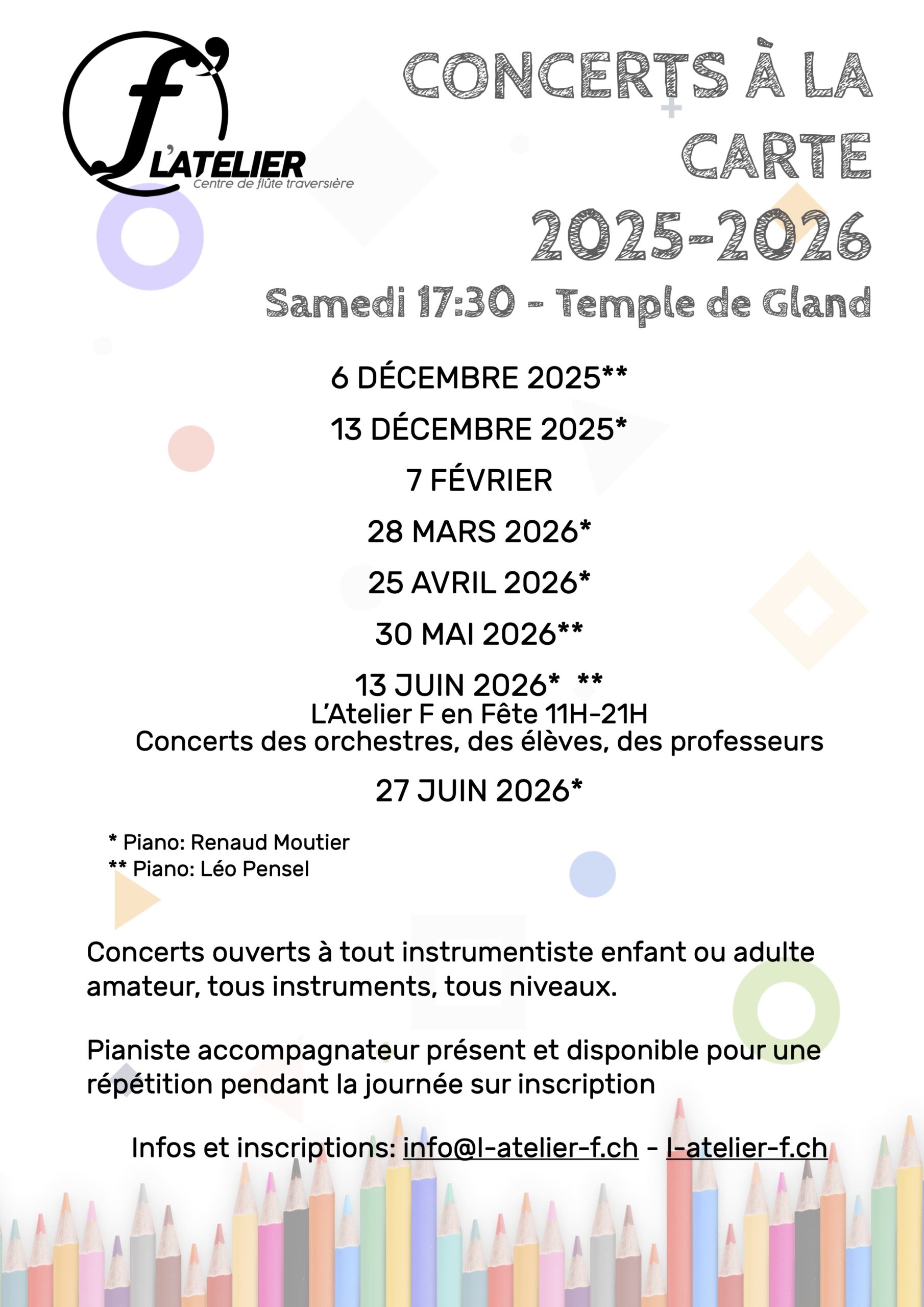 11:00 - 12:00 | Concert des orchestres 14:00 - 17:00 | Concerts d'élèves - démonstrations - essai - renseignements 20:00 - 21:00 | Concert des professeurs Avec Carole Reuge, flûte […]